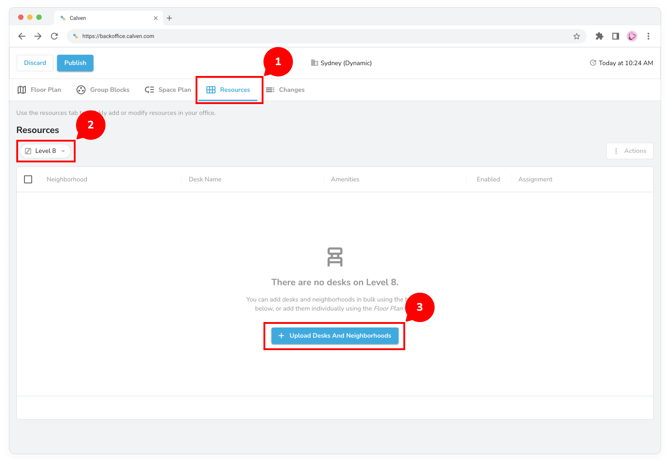 You can always add and configure desks and neighborhoods one by one, but we recommend using Calven's bulk upload feature to get started.
