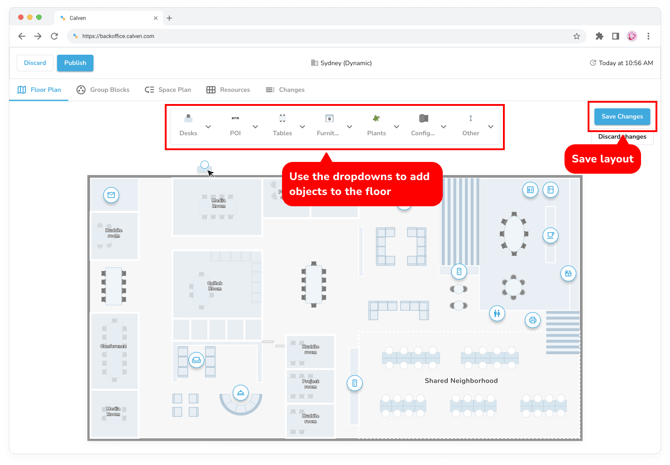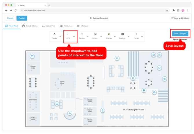 Once you've entered edit mode, you can edit the layout of your floor plan and start adding desks, points of interest, and other details: