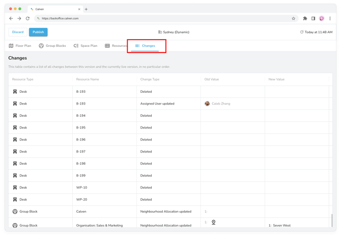 When you create a new scenario, Calven duplicates the live one (including floor plan, group blocks, space plan, and all other configurations from the floor plan editor) and creates a draft version that you can edit without disrupting the live configuration.