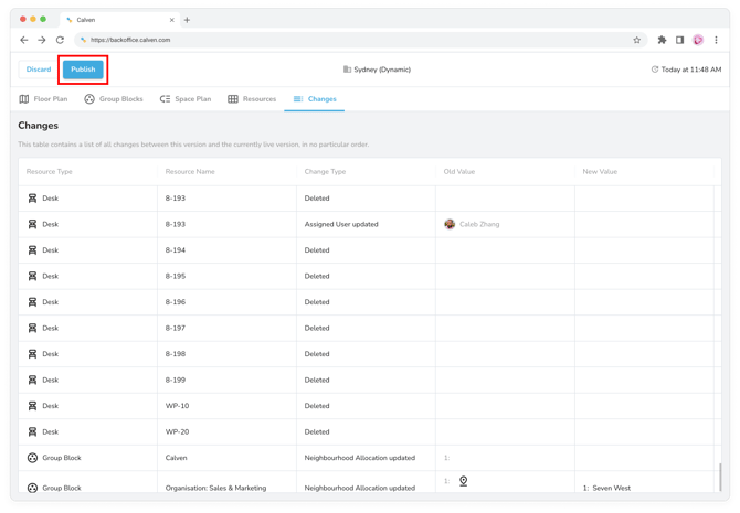 Once you're comfortable with the floor plan and space plan you've set up, use the publish button to make them live for all users.