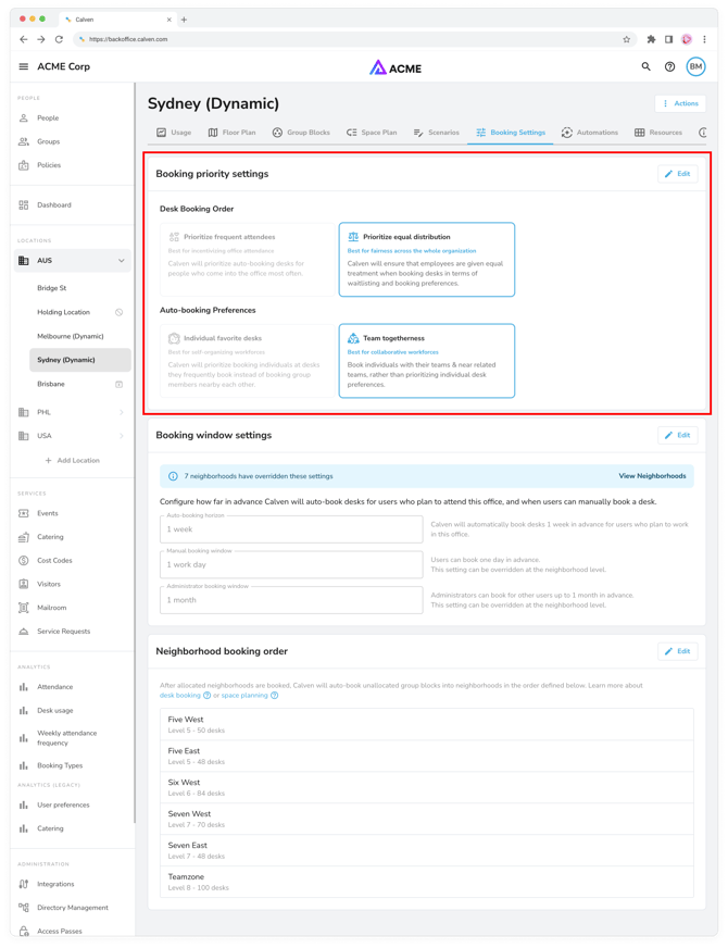 The quickest way to tell which algorithm your office is using is by navigating to the booking settings for the office. If your office's booking settings has a booking priority settings section, it's using the current desk booking algorithm.