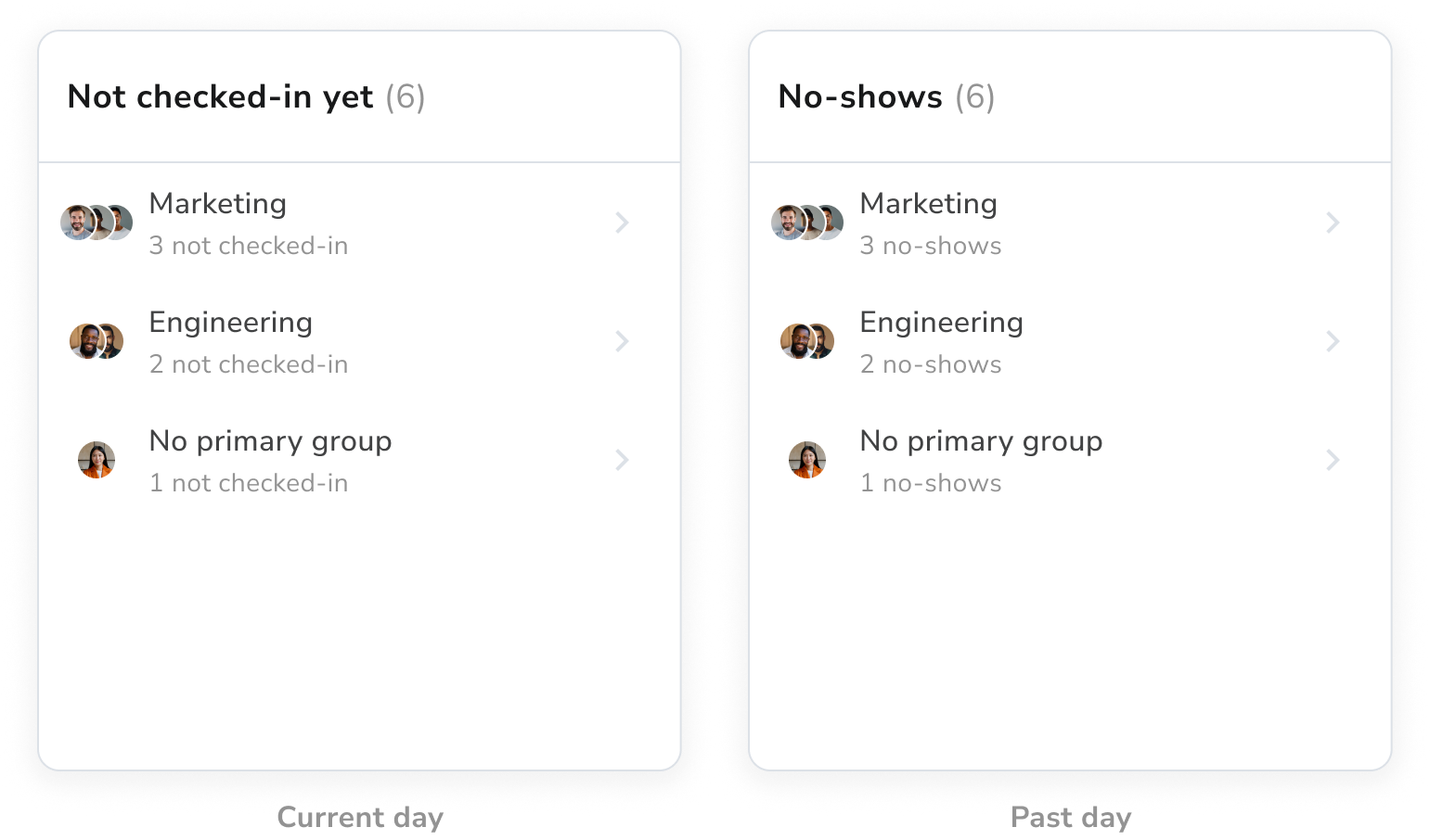 On the current day, this widget will be titled not checked-in yet. With a past day selected, the title will change to no-shows, to indicate that these are users who did not check-in for their desk bookings: