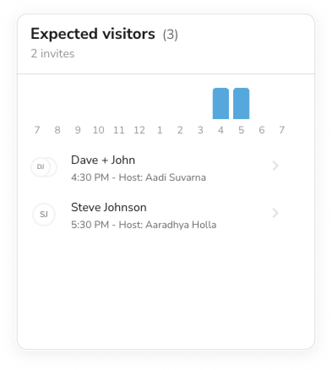 It shows when visitors will be attending the office based on visitor invites. It will also show the invited groups that are attending the office. Graphically it will show the number of attendees between the hours of 7AM and 7PM (in the office's timezone).