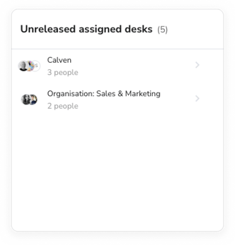 The unreleased assigned desks widget is available to Real Estate admin and Booking admin.